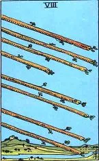 决裂。分离。情绪控管不好而容易冒犯人。 - 权杖八 (逆位)